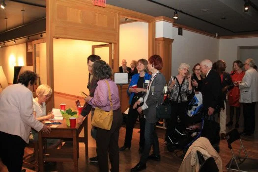 Over 80 people gathered last night at the beautiful University of Toronto Art Centre to launch The Perfect Home For a Long Life. It was May Day, spring had finally arrived in Toronto, and the excited buzz in the room was a celebration of new beginnings. As one guest said, "Your launch is part of the joy and beauty of spring." Much credit for the joy-filled atmosphere goes to the talented jazz singer Shannon Butcher and her pianist Michael Shand who filled the room with hot sounds. Great music, provocative art, smart company - the book was launched in style.